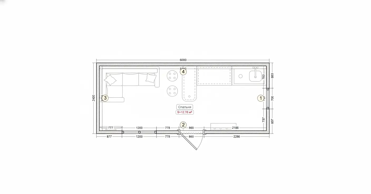 - Перегородка с м/к дверью под с/у или комнату