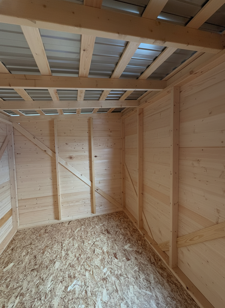 - Каркас - доска 50х100 мм. сухая, камерной сушки, пол ОСБ или сухая строганная доска 25х100 мм.